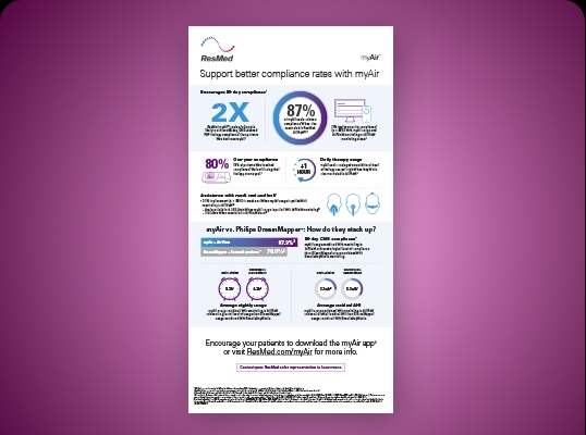 CPAP setups can be overwhelming — for both you and your patients. With limited time to explain everything, the myAir™ app helps bridge the gap. It keeps patients supported after they leave your office, so you don’t have to revisit the basics.