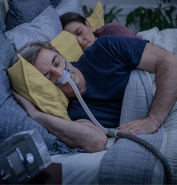 CPAP equipment is used to treat sleep apnea. There are four products that all work together to deliver your therapy: the machine, mask, air tubing and Resmed myAir™ app. The CPAP machine creates the airflow that is pushed through the tubing to the mask and into your lungs.