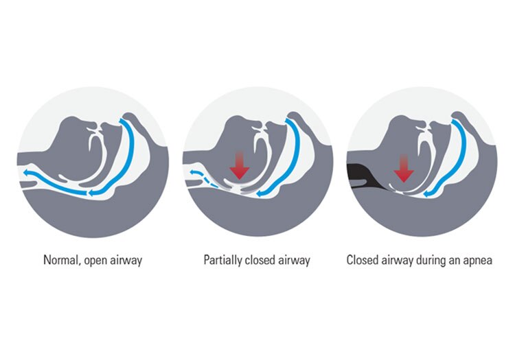The most common sleep disorder is obstructive sleep apnea (OSA). If you have OSA, the tissue in your throat blocks your airway when your muscles relax during sleep. When this tissue gets in the way, it creates a roadblock because not enough air can travel to your lungs. The air has to squeeze by the blockage, which is heard as snoring.